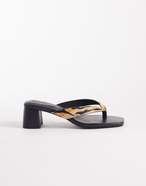 ASOS DESIGN Hideout premium leather block heeled toe thong sandals in tiger print
