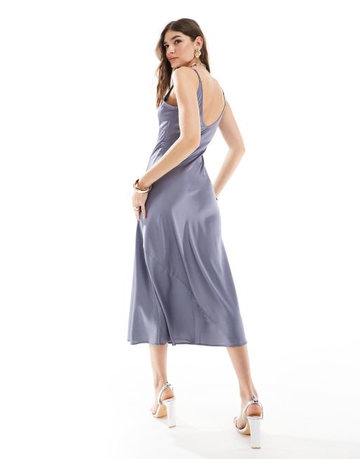 ASOS DESIGN high apex midi slip dress in blue