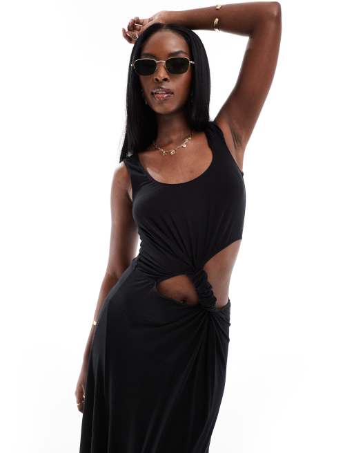 ASOS DESIGN high low hem cut out midi dress with twist strap in black