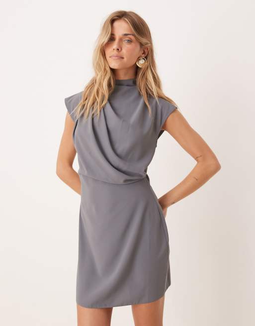 ASOS DESIGN high neck sleeveless mini dress with draped neck in gray