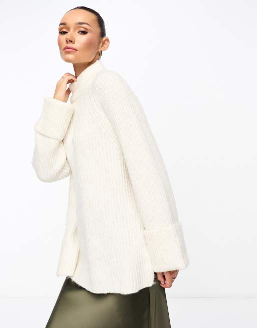 ASOS DESIGN high neck sweater with turn back cuff in long and lean block in cream
