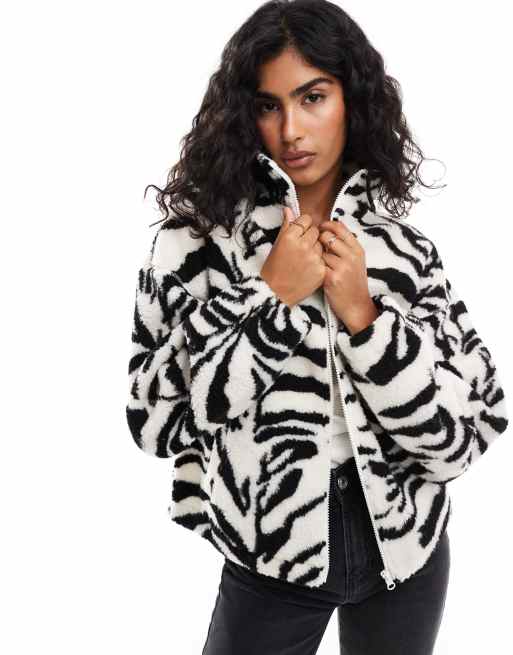 ASOS DESIGN high neck teddy fleece zip up sweatshirt in zebra print