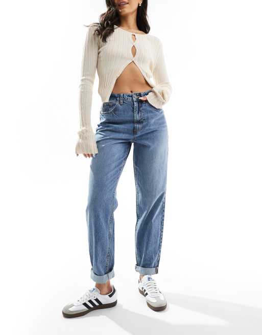 ASOS DESIGN high rise relaxed mom jeans in mid blue