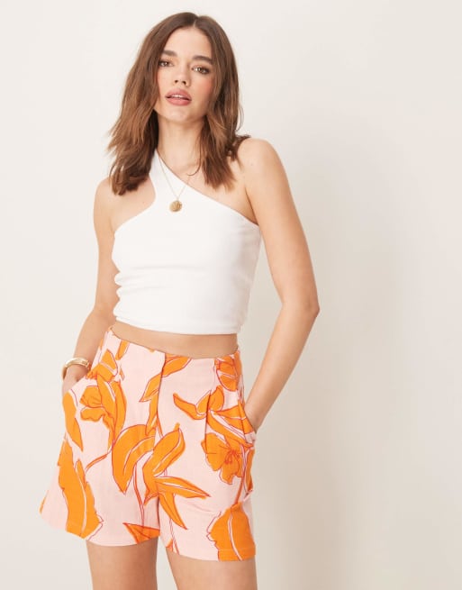 ASOS DESIGN high rise seam detail tailored shorts with linen in palm print - part of a set