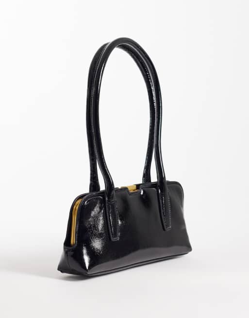 ASOS DESIGN high shine elongated handle purse in black
