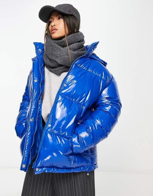ASOS DESIGN high shine puffer jacket in blue