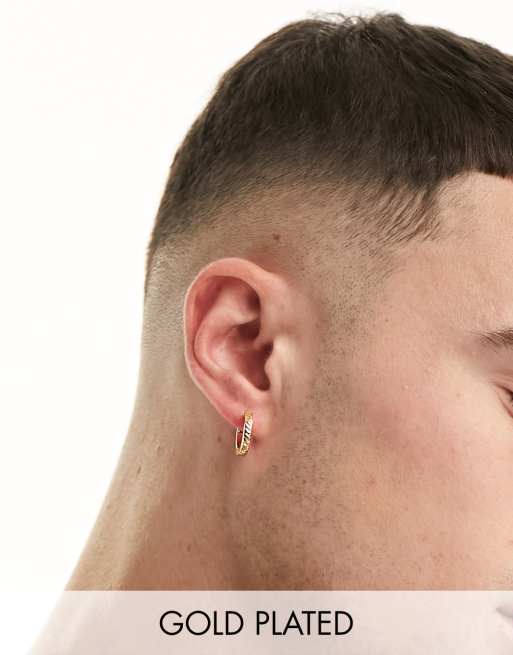 ASOS DESIGN hoop earring with texture in 14k gold plate
