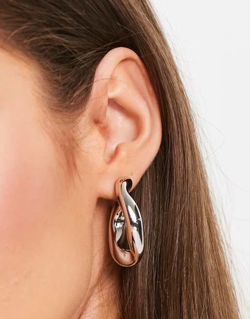 ASOS DESIGN hoop earring with twist link design in silver tone