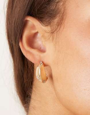 ASOS DESIGN hoop earrings with angular design in gold tone