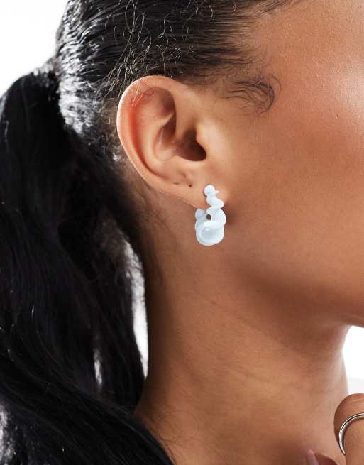 ASOS DESIGN hoop earrings with twisted clicker detail in blue