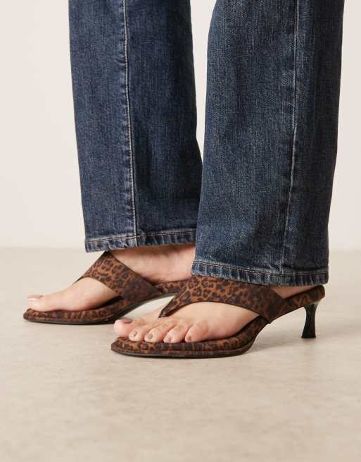 ASOS DESIGN Horizon chunky flip flop kitten heel sandals in leopard