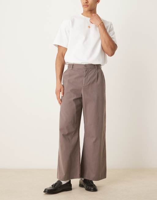 ASOS DESIGN horseshoe dress pants with front pleats in brown