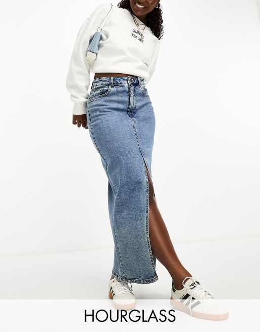 ASOS DESIGN Hourglass denim maxi skirt with split hem in midwash