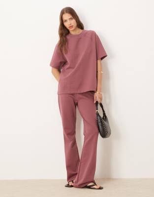 ASOS DESIGN interlock flared sweatpants in dark rose - part of a set
