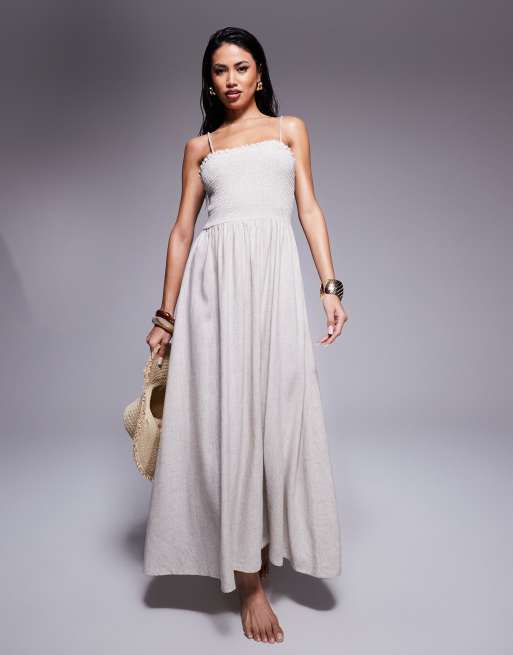 ASOS DESIGN Isabel linen blend shirred strapless beach sundress in natural