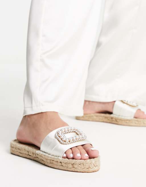 ASOS DESIGN Jenna pearl espadrille sandals in ivory