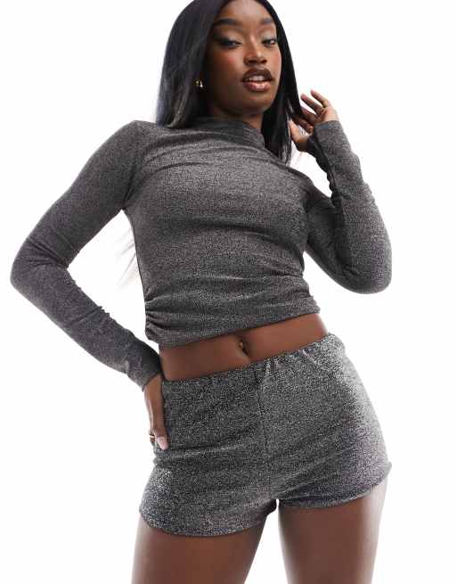 ASOS DESIGN jersey micro hotpants in black glitter