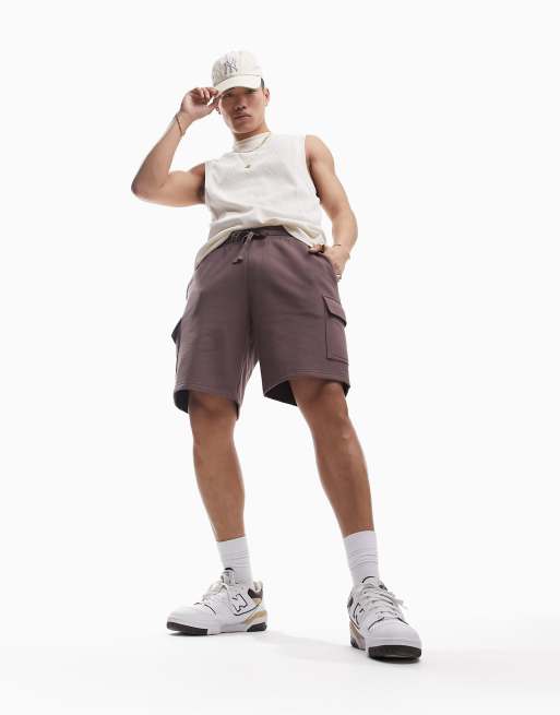 ASOS DESIGN jersey shorts with cargo pockets in washed brown