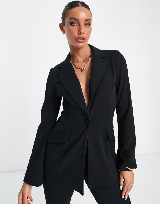 ASOS DESIGN jersey suit slit sleeve tux blazer in black