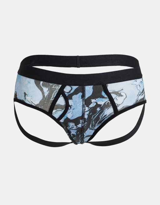ASOS DESIGN jock strap in microfiber with marble print