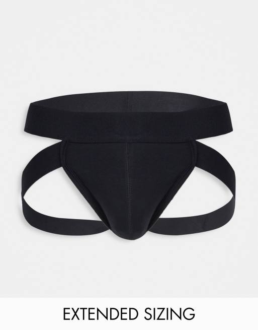 ASOS DESIGN jock strap with leg strap in black