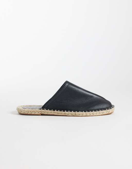 ASOS DESIGN Joline espadrille mule sandals in black leather