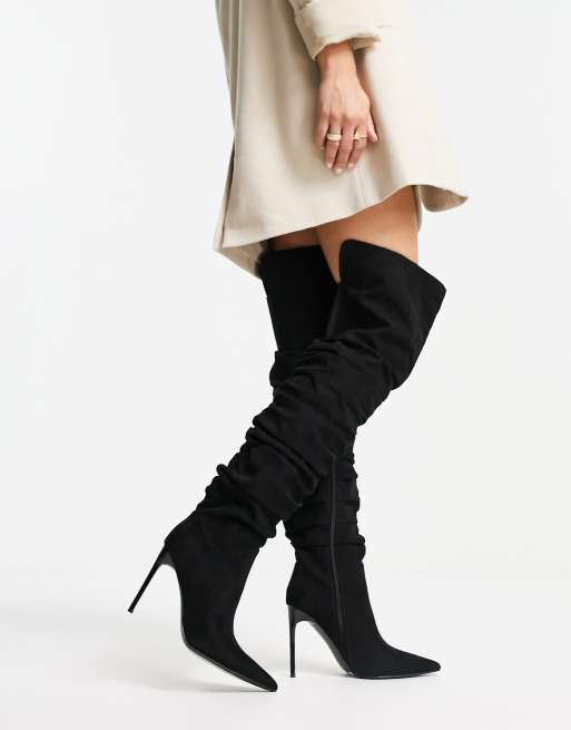 ASOS DESIGN Kingdom heeled ruched over the knee boots in black
