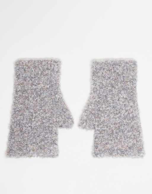 ASOS DESIGN knit boucle fingerless gloves in gray