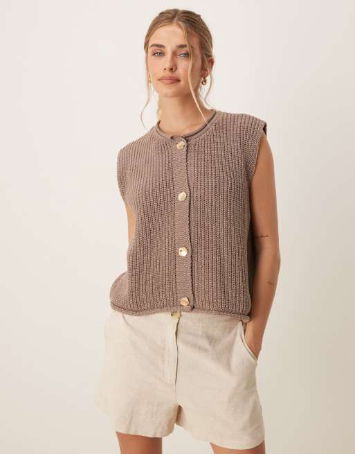 ASOS DESIGN knit boxy vest with gold buttons in mocha