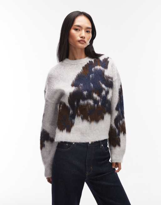 ASOS DESIGN knit brushed floral sweater in gray