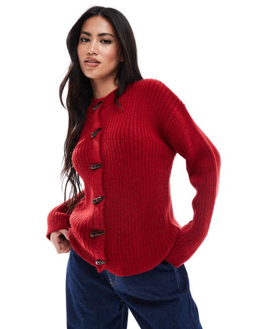 ASOS DESIGN knit cardigan with toggle buttons in red