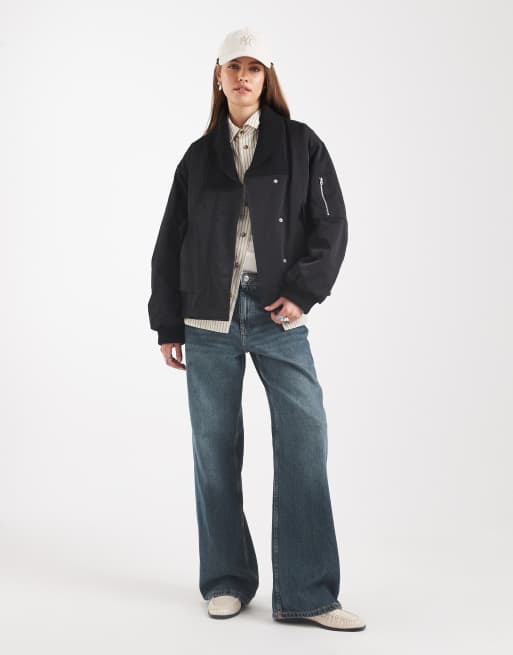 ASOS DESIGN knit collar bomber jacket in black
