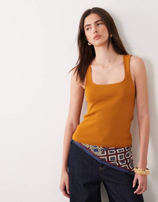 ASOS DESIGN knit compact square neck cami in toffee