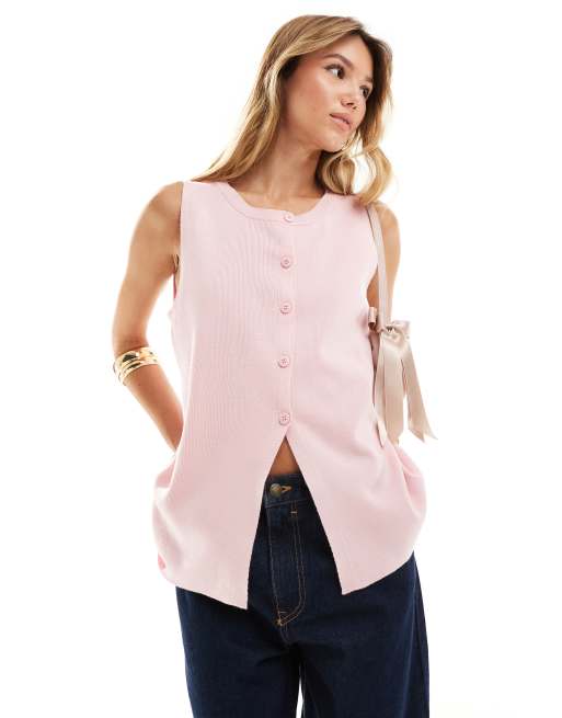 ASOS DESIGN knit crew neck vest with front slit in pink