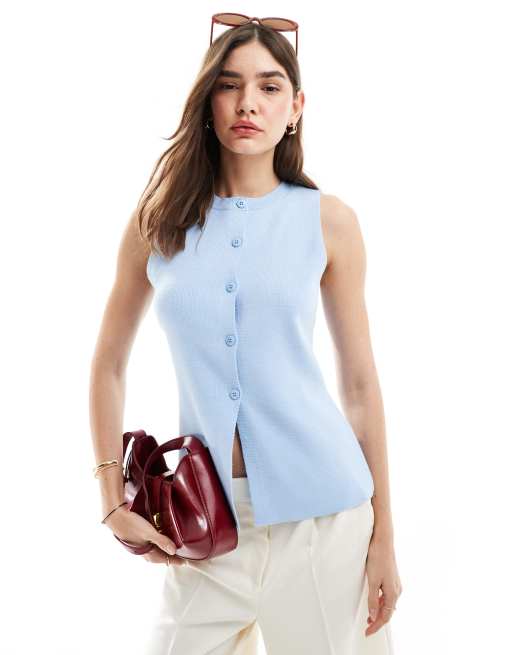 ASOS DESIGN knit crew neck vest with front split in blue