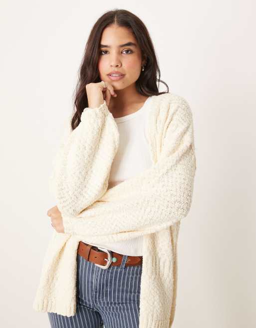 ASOS DESIGN knit edge to edge cardigan in textured yarn in cream
