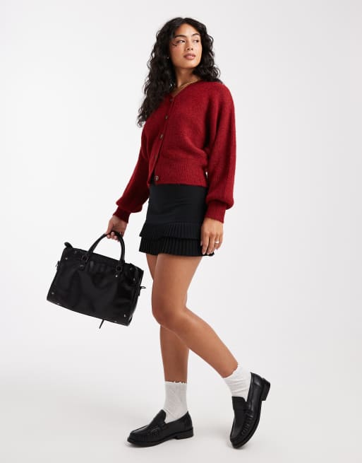 ASOS DESIGN knit fluffy batwing cardigan in burgundy