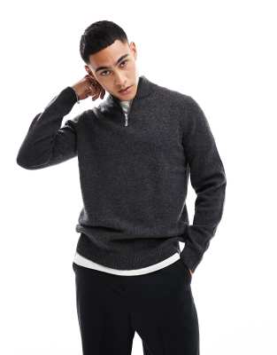 ASOS DESIGN knit lambswool 1/4 zip sweater in charcoal