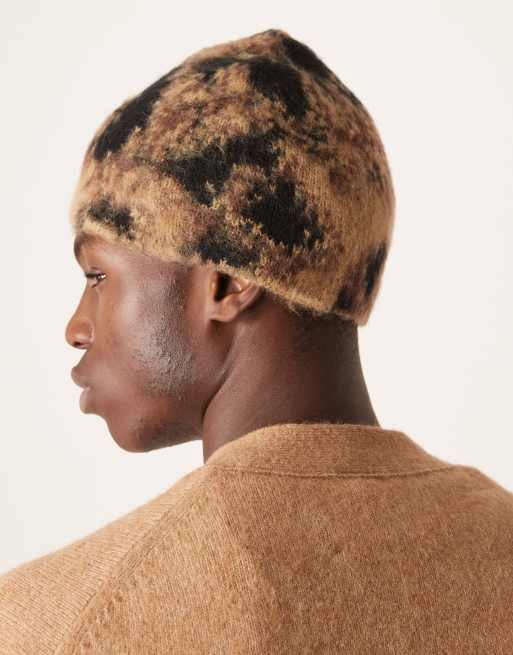 ASOS DESIGN knit leopard graphic skull beanie in neutral