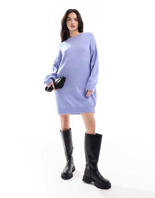 ASOS DESIGN knit mini sweater dress with crew neck in blue