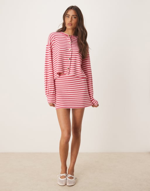 ASOS DESIGN knit set in dark pink stripe