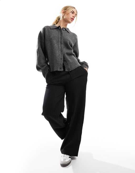 ASOS DESIGN knit shirt collar cardigan in charcoal