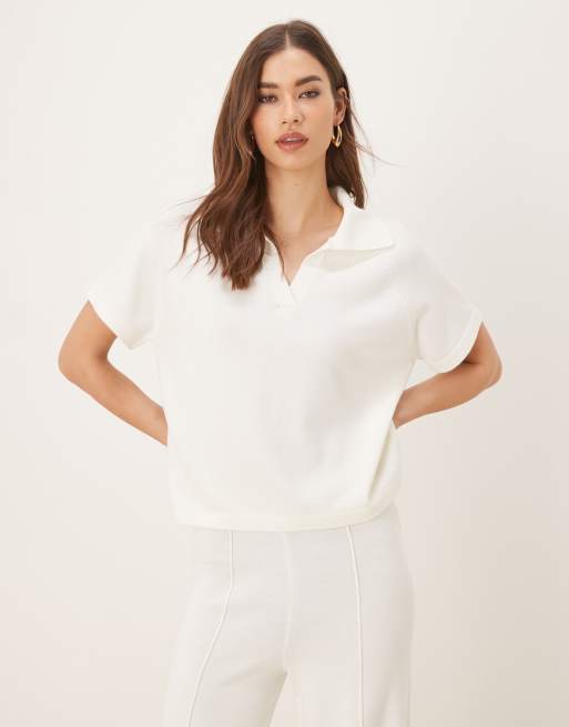 ASOS DESIGN knit short sleeve polo shirt in cream
