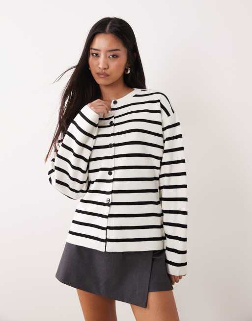 ASOS DESIGN knit structured crew neck cardigan in mono stripe