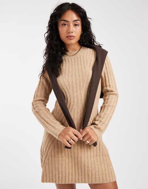 ASOS DESIGN knit structured mini dress in oatmeal