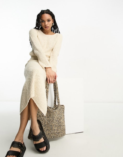 ASOS DESIGN knit sweater and maxi skirt set in textured ladder stitch in cream