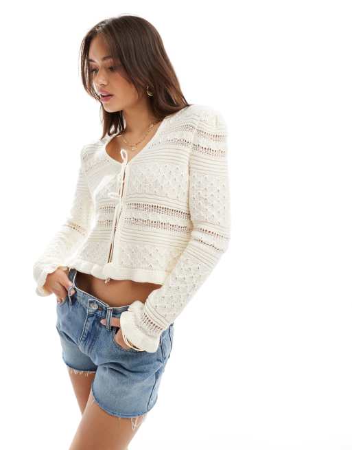 ASOS DESIGN knit tie front cardigan in stripe stitch