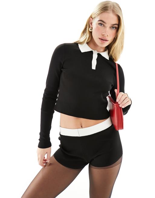 ASOS DESIGN knit top with collar and contrast trim in black - part of a set