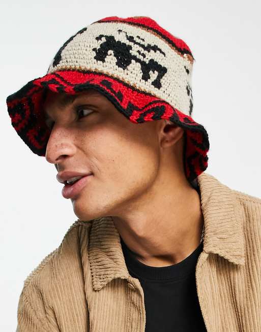 ASOS DESIGN knitted bucket hat with aztec inspired design in multicolor