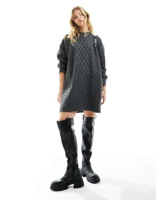 ASOS DESIGN knitted cable mini sweater dress in charcoal